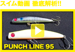従来のシンキングペンシルは、その使用感の無さから水の流れを見つけ難かった。そのシンペンの常識を打ち破る“新しいカタチ”がPUNCH LINEである。最大の特徴である“フラットなヘッド形状”で水をしっかりと受けて手元に抵抗感を伝え、アングラーは水の流れやポジションを把握でき、横方向ではS字スラローム、縦方向ではローリングと2つの動きで戦略的かつ立体的な誘いを可能とする。